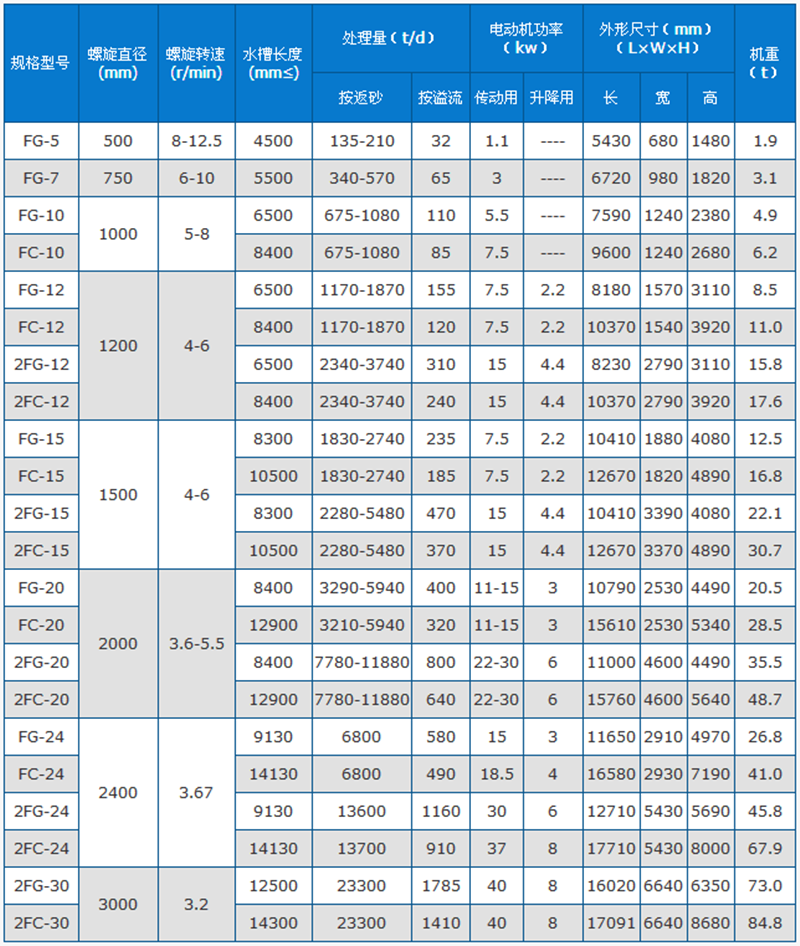 螺旋分級機技術參數