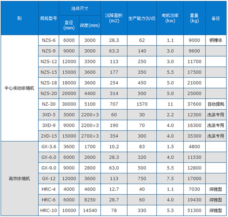 濃縮機(高效濃縮機)一般主要由濃縮池、粑架、傳動裝置、粑架提升裝置、給料裝置、卸料裝置和信號安全裝置等組成。